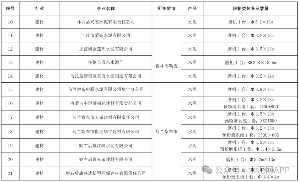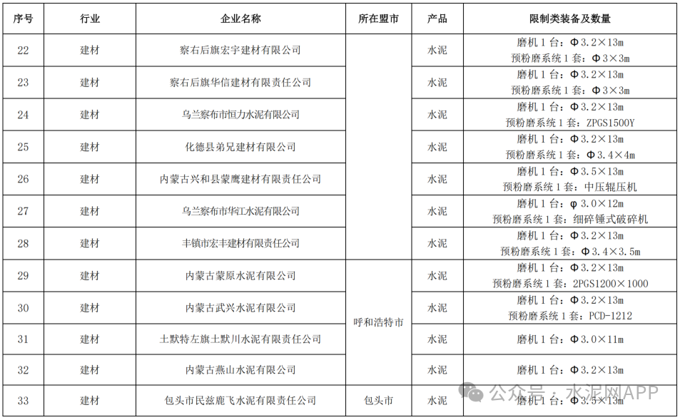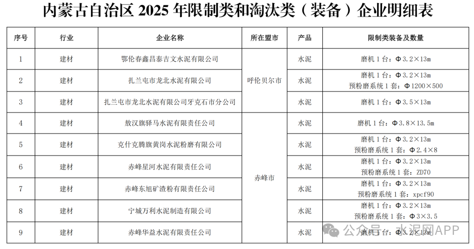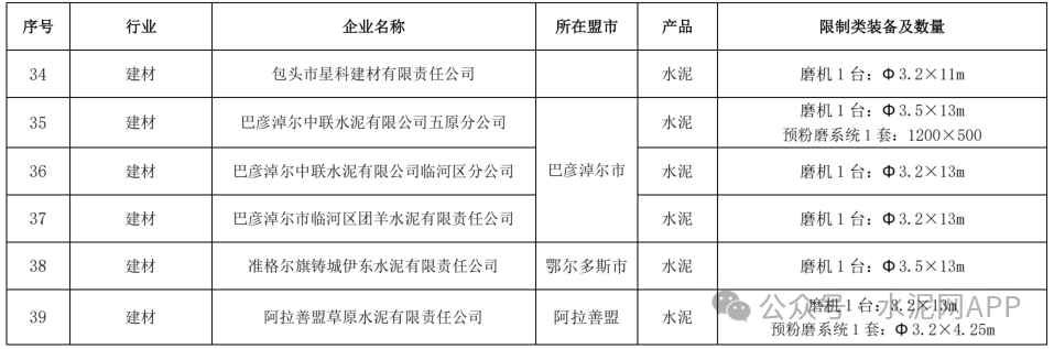 公示顯示,共計(jì)39家水泥企業(yè)列入內(nèi)蒙古2025年限制類明細(xì)表。