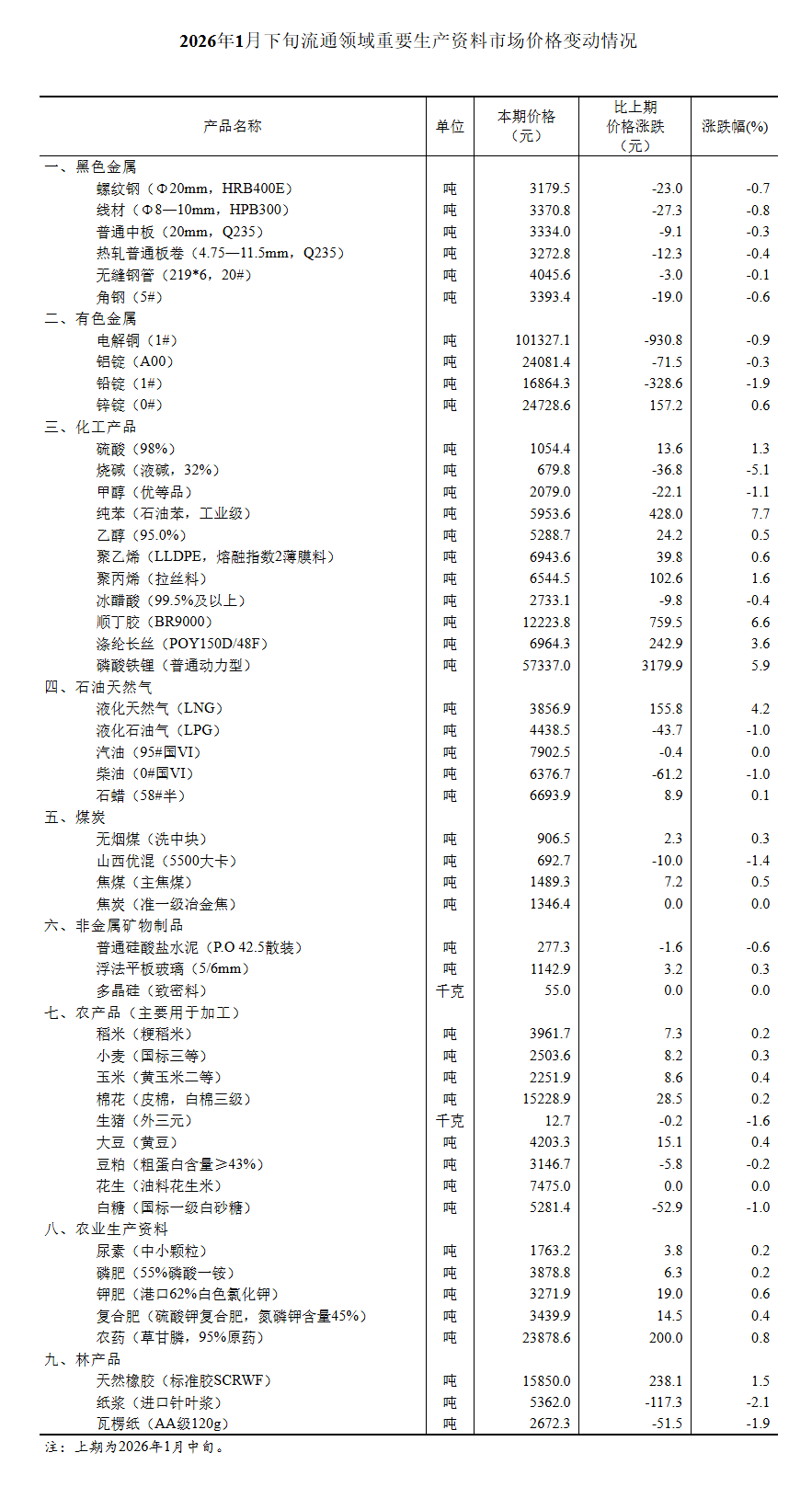據(jù)對(duì)全國流通領(lǐng)域9大類50種重要生產(chǎn)資料市場價(jià)格的監(jiān)測(cè)顯示,2026年1月下旬與1月中旬相比,25種產(chǎn)品價(jià)格上漲,21種下降,4種持平。