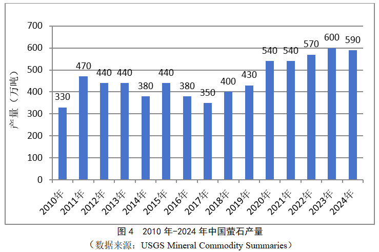 【來源】彭春艷.全球螢石資源供需形勢(shì)分析及對(duì)我國螢石產(chǎn)業(yè)發(fā)展的建議[J].中國非金屬礦工業(yè)導(dǎo)刊,2025(4):1-5.