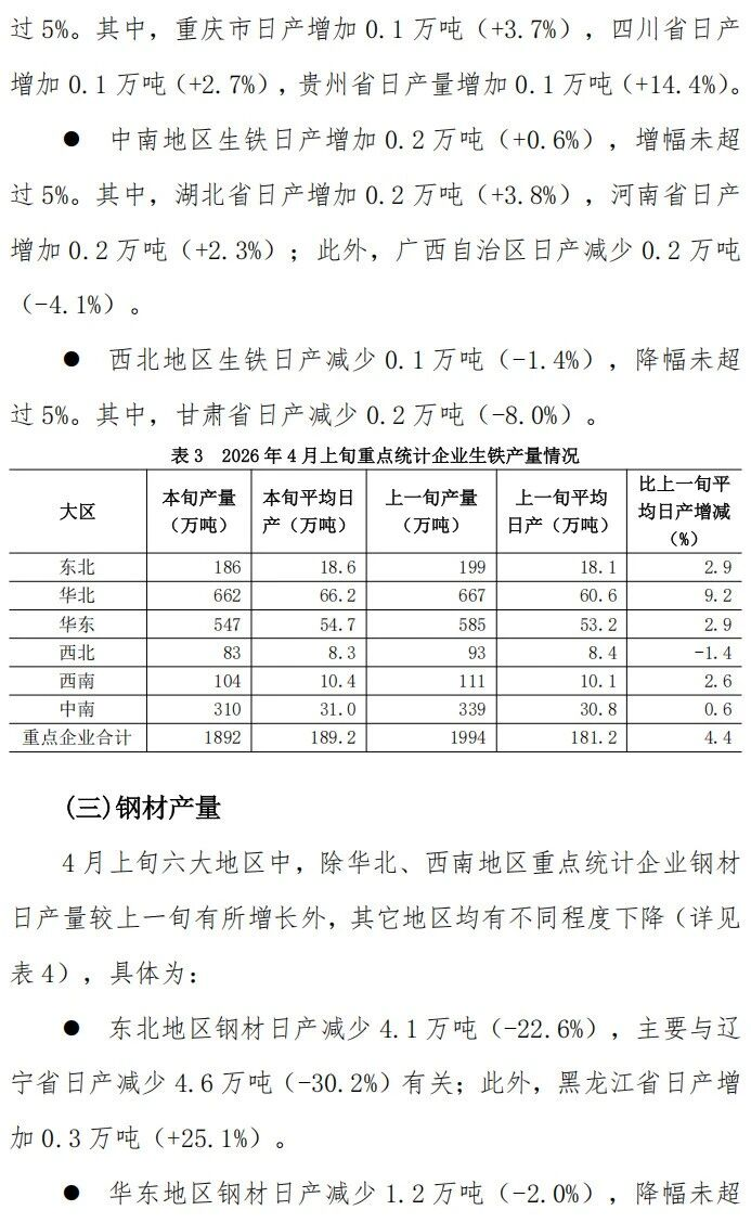 4月上旬重點(diǎn)統(tǒng)計(jì)企業(yè)鋼鐵產(chǎn)量旬報(bào)